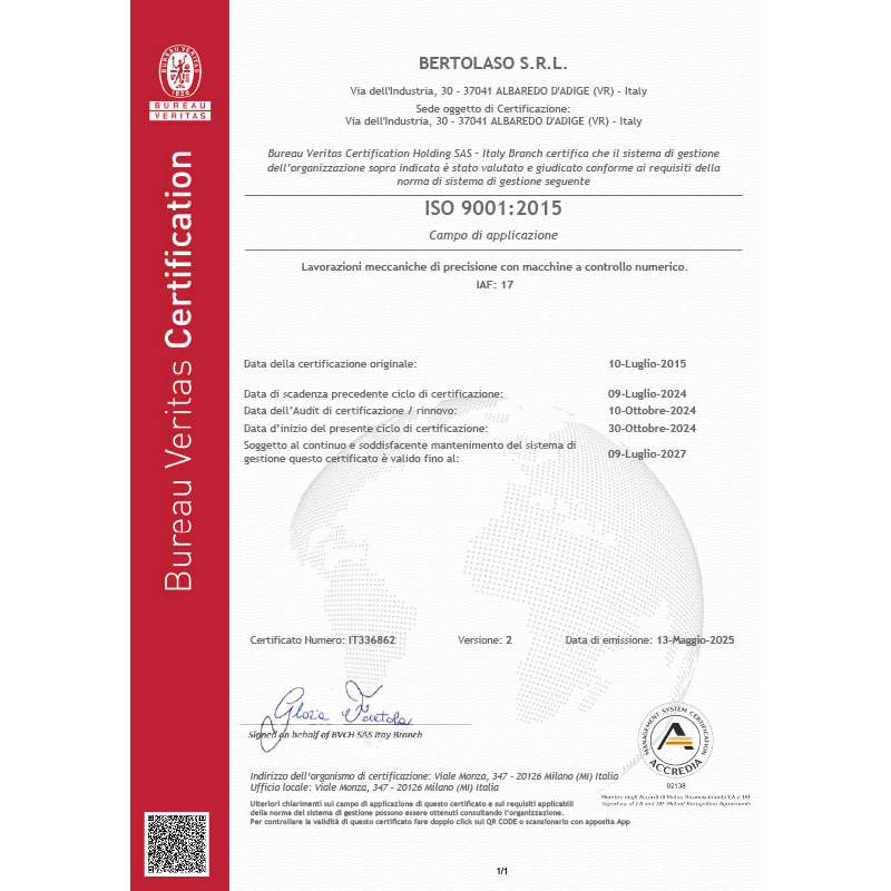 L’officina meccanica di precisione BERTOLASO SRL, forte dell’esperienza acquisita nell’ambito della meccanica di precisione industriale, è in grado di garantire capacità produttive e qualità del prodotto finito; offre lavorazioni meccaniche curate alla perfezione ed è dotata di apparati tecnologici avanzati per la tornitura e la fresatura professionale grazie all’uso di moderne tecnologie e ad uno staff specializzato.